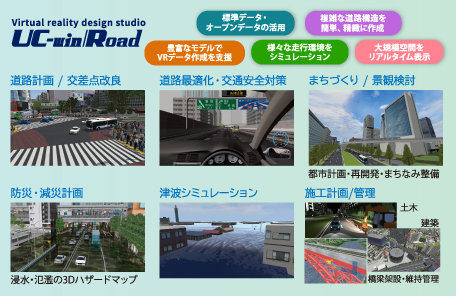 フォーラムエイトが自社開発して2000年にリリースし、20年以上進化し続けている最新の3DVRソフトウェアです。デジタルツインを構築し、各種プロジェクトにおける計画検討や施工シミュレーションなど様々な目的で活用できます。BIM/CIMデータに対応し、J-LandXMLやIFCデータ形式にも対応しています。シミュレーションだけでなく、外部機器との連携により、3DVRと現実世界がリアルタイムに連携する、遠隔制御、モニタリング、自動制御にも活用されています。